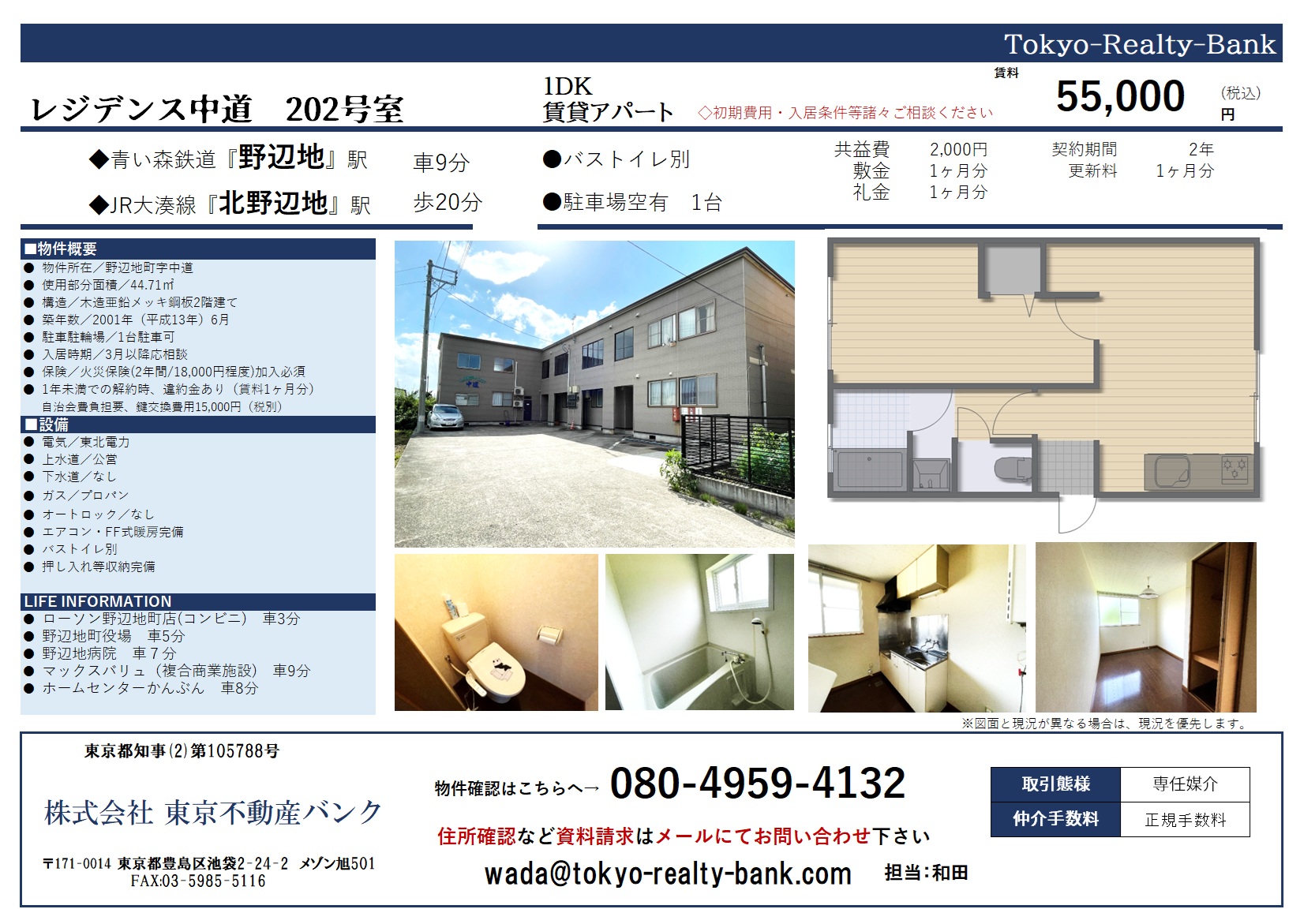 現在、野辺地町のアパート「レジデンス中道」で入居者を募集しています!